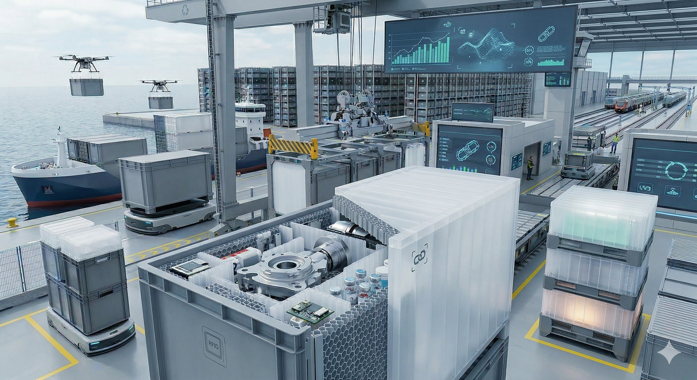 ● reusable containers for complex supply chains,